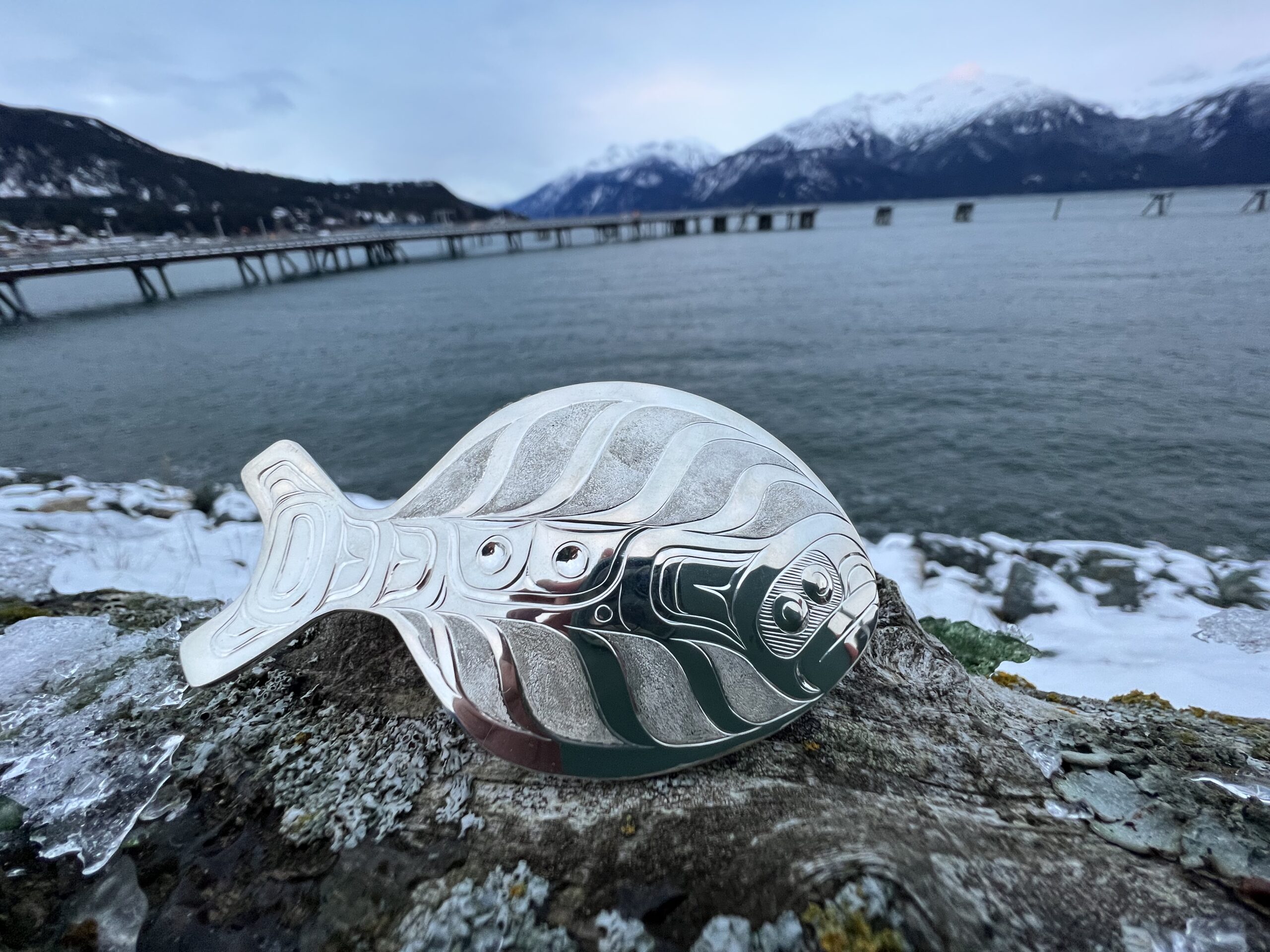 Can slightly see the hole from the eyes. The ones in the middle stand out a little more. You can see we got a real strong solder on the back by the tail. I stipple all the parts in between the rib bones giving a nice contrast to make the rest of the polished surface area really shine.Very happy with the outcome of my first halibut pendant.