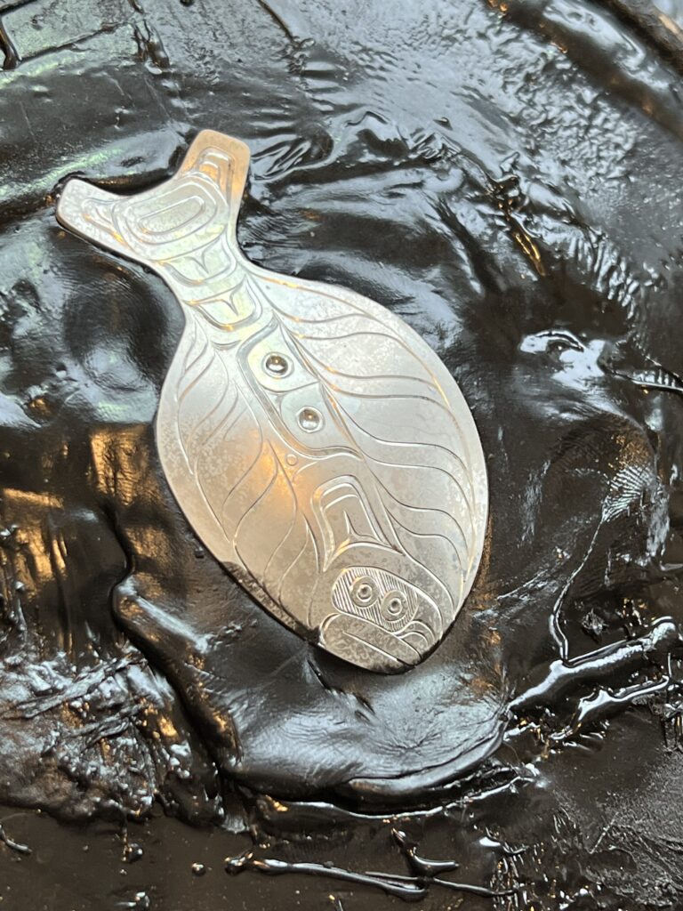 Once I get a good idea of how they look I need to mix that with formline. This takes some time of making many different variations. If it looked great the first go that would save me lots of time. Unfortunately that doesn’t happen. Many tries latter and lots of erasing I finally have it. Send it to Greg for the approval. Get the go ahead to put the drawing on metal.