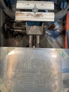 In October 2023 the opportunity “Business Basics for Artists” workshop via Spruce Root and Chilkoot Indian Association came up. After the panel discussion with local artists, I was inspired to learn formline and silver carving. I had long been seeking my place on Lingit Aani and how to make a living. Community organizing, classes in Northwest Coast Art, History, and Culture, and beadwork created a vision that might one day become real. From October to January, Chilkoot Indian Association and Sealaska Heritage Institute provided classes led by artists and culture bearers like Beginning Formline with G̱ooch Éesh, Silver Carving with Jenny Lyn Smith, and Metal Engraving Intensive with Abel Ryan in Áak’w Ḵwáan aaní.