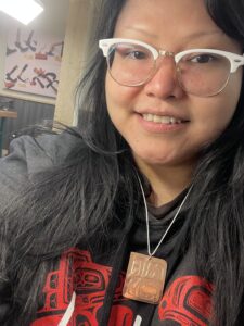 In October 2023 the opportunity “Business Basics for Artists” workshop via Spruce Root and Chilkoot Indian Association came up. After the panel discussion with local artists, I was inspired to learn formline and silver carving. I had long been seeking my place on Lingit Aani and how to make a living. Community organizing, classes in Northwest Coast Art, History, and Culture, and beadwork created a vision that might one day become real. From October to January, Chilkoot Indian Association and Sealaska Heritage Institute provided classes led by artists and culture bearers like Beginning Formline with G̱ooch Éesh, Silver Carving with Jenny Lyn Smith, and Metal Engraving Intensive with Abel Ryan in Áak’w Ḵwáan aaní.